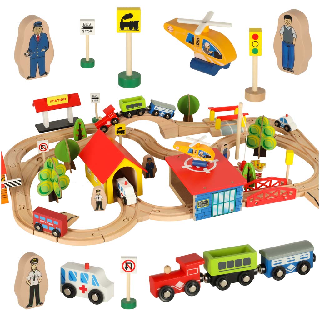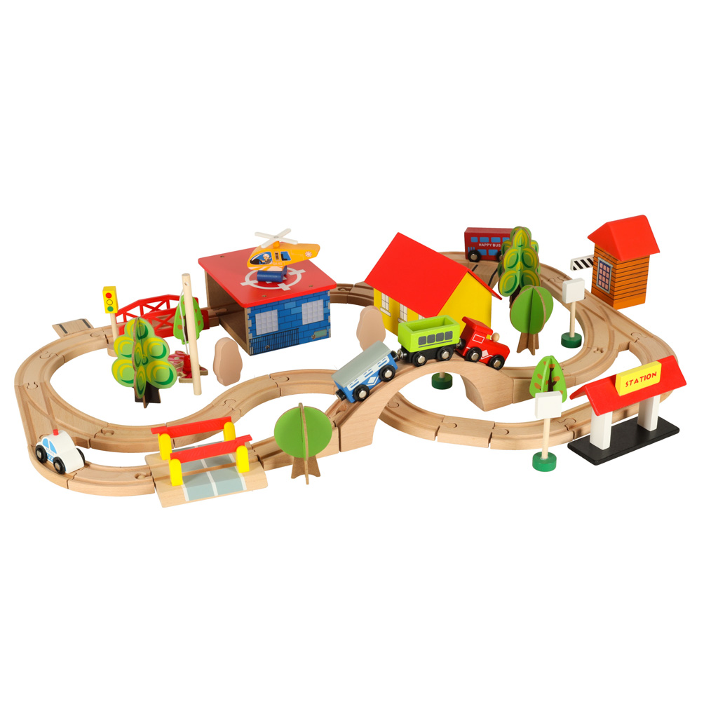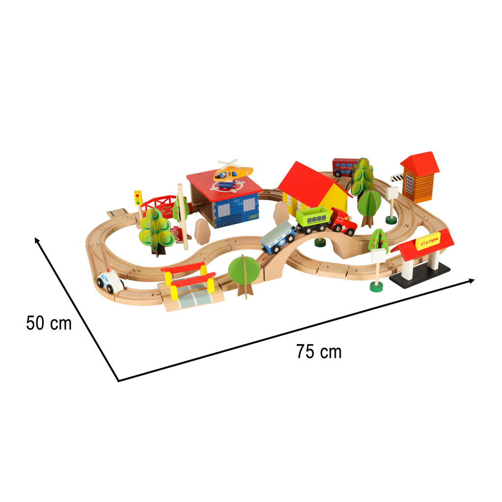Avasta lõputu mängurõõm puidust rongikomplektiga, mis sisaldab 69 elementi. See komplekt pakub lastele võimalust luua oma unikaalne linn, arendades samal ajal loovust ja käelisi oskusi. Kvaliteetsed ja siledad puidust osad tagavad ohutu ja vastupidava mängukogemuse.