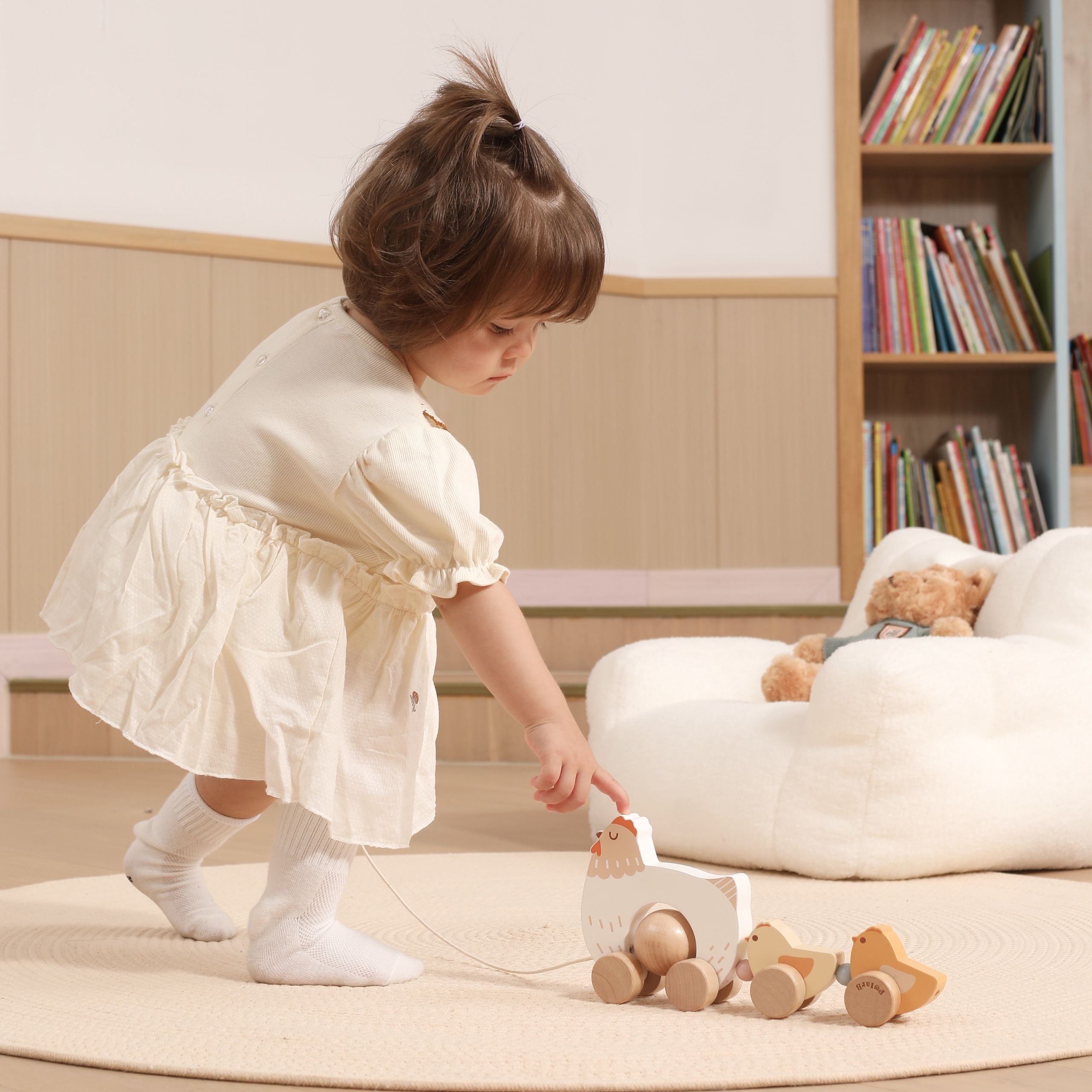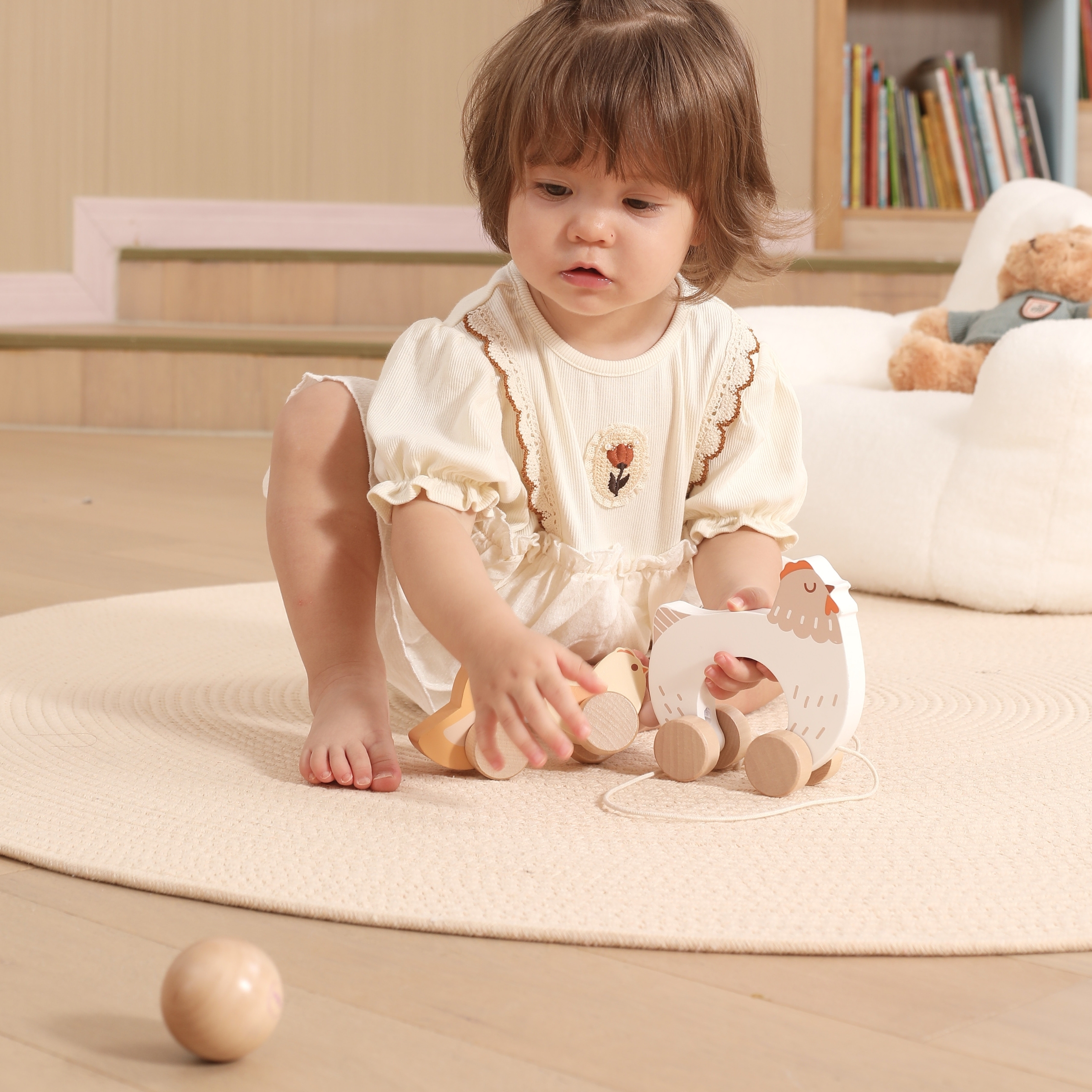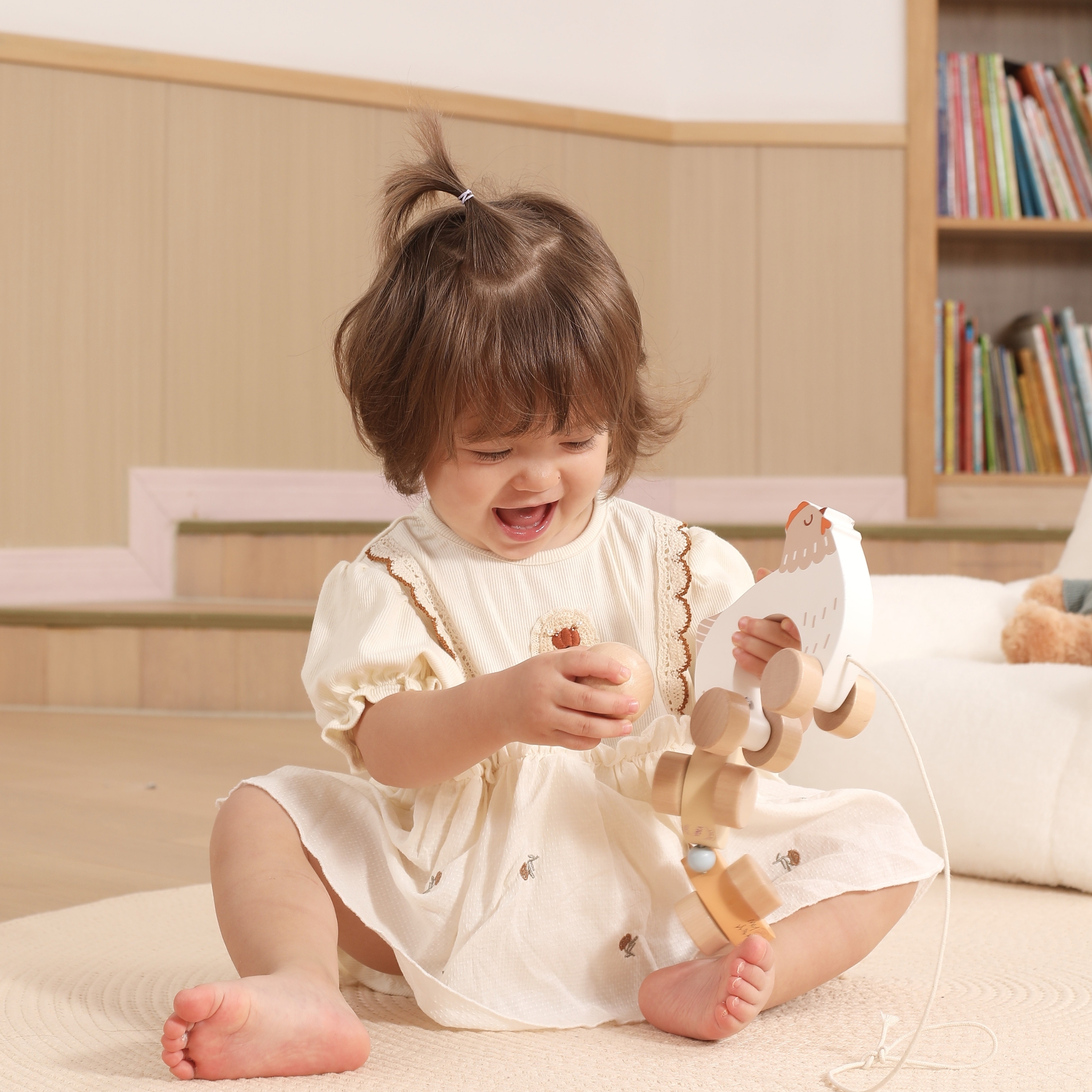 Puidust tõmmatav kanamänguasi koos tibudega on suurepärane kaaslane lapse esimesteks sammudeks. Rõõmsalt kõikuvad tibud ja eemaldatav muna pakuvad mitmekülgset mänguvõimalust. Vastupidav puidust konstruktsioon tagab pikaajalise vastupidavuse ja turvalisuse. Mänguasi ühendab liikumise, avastamise ja õppimise, stimuleerides lapse motoorikat ja koordinatsiooni.