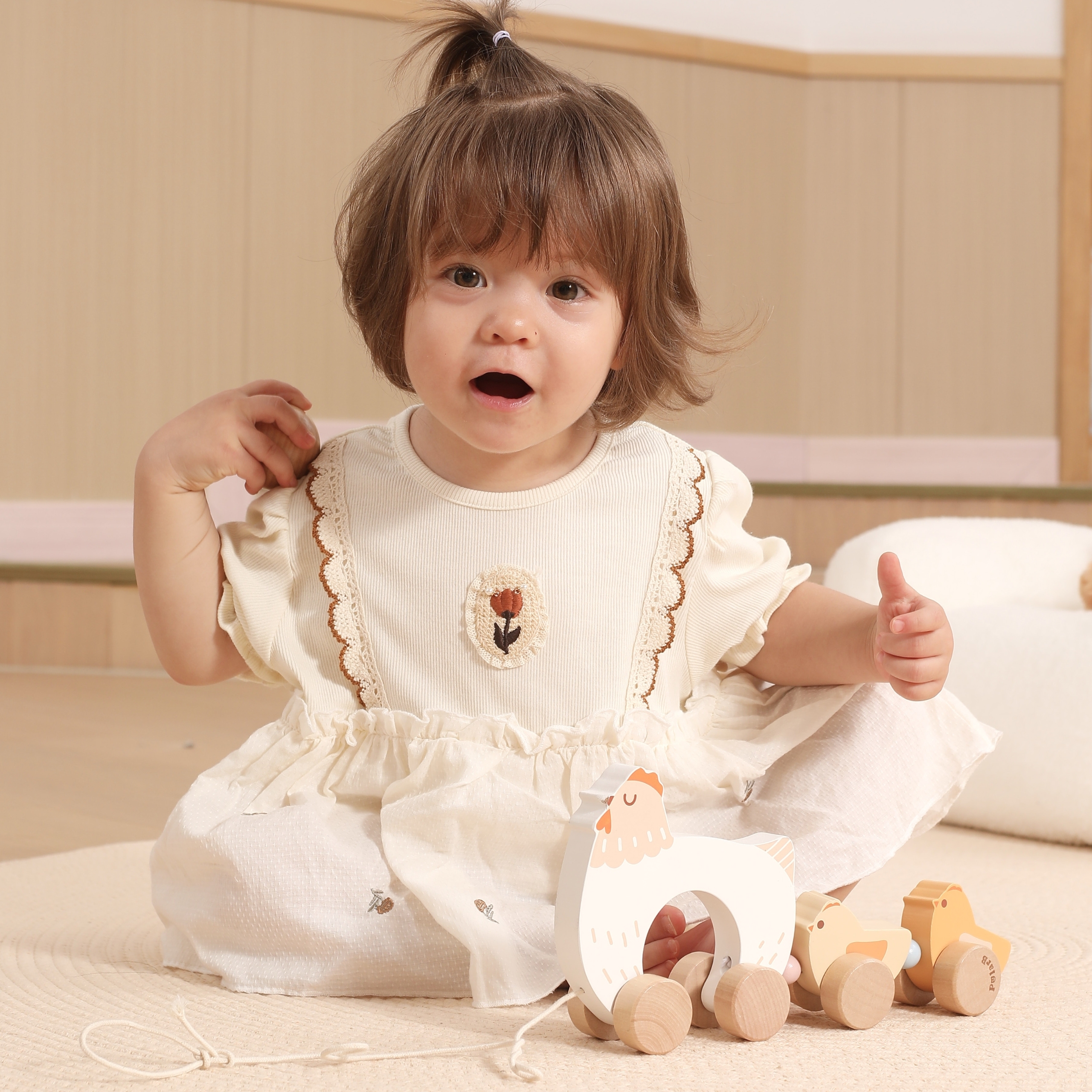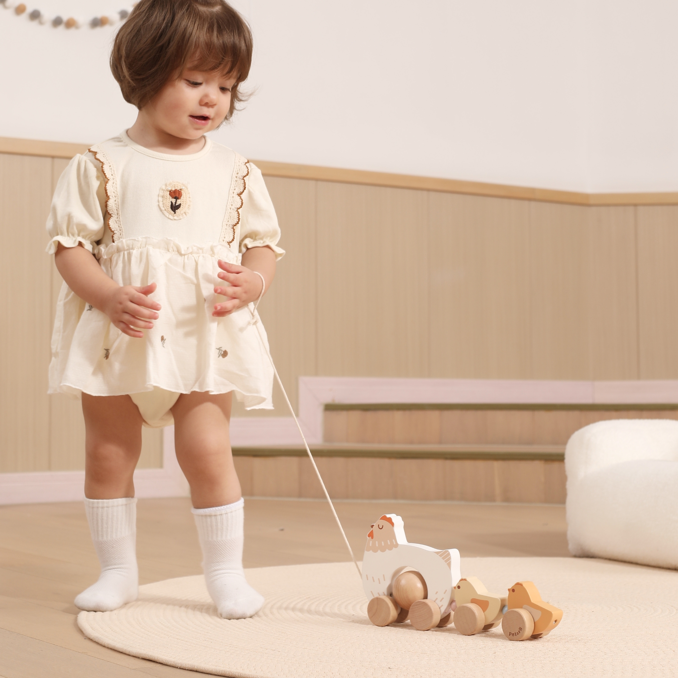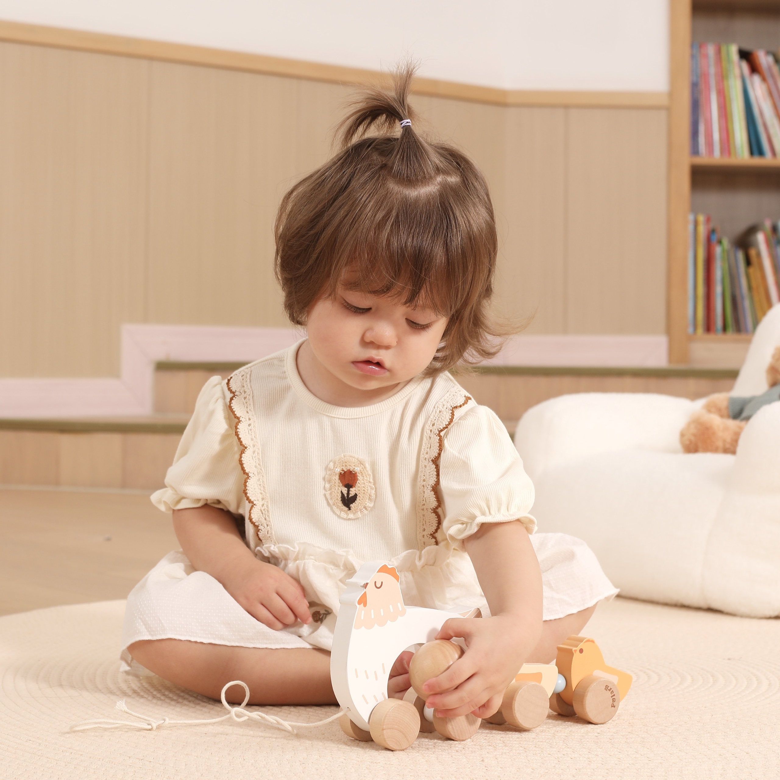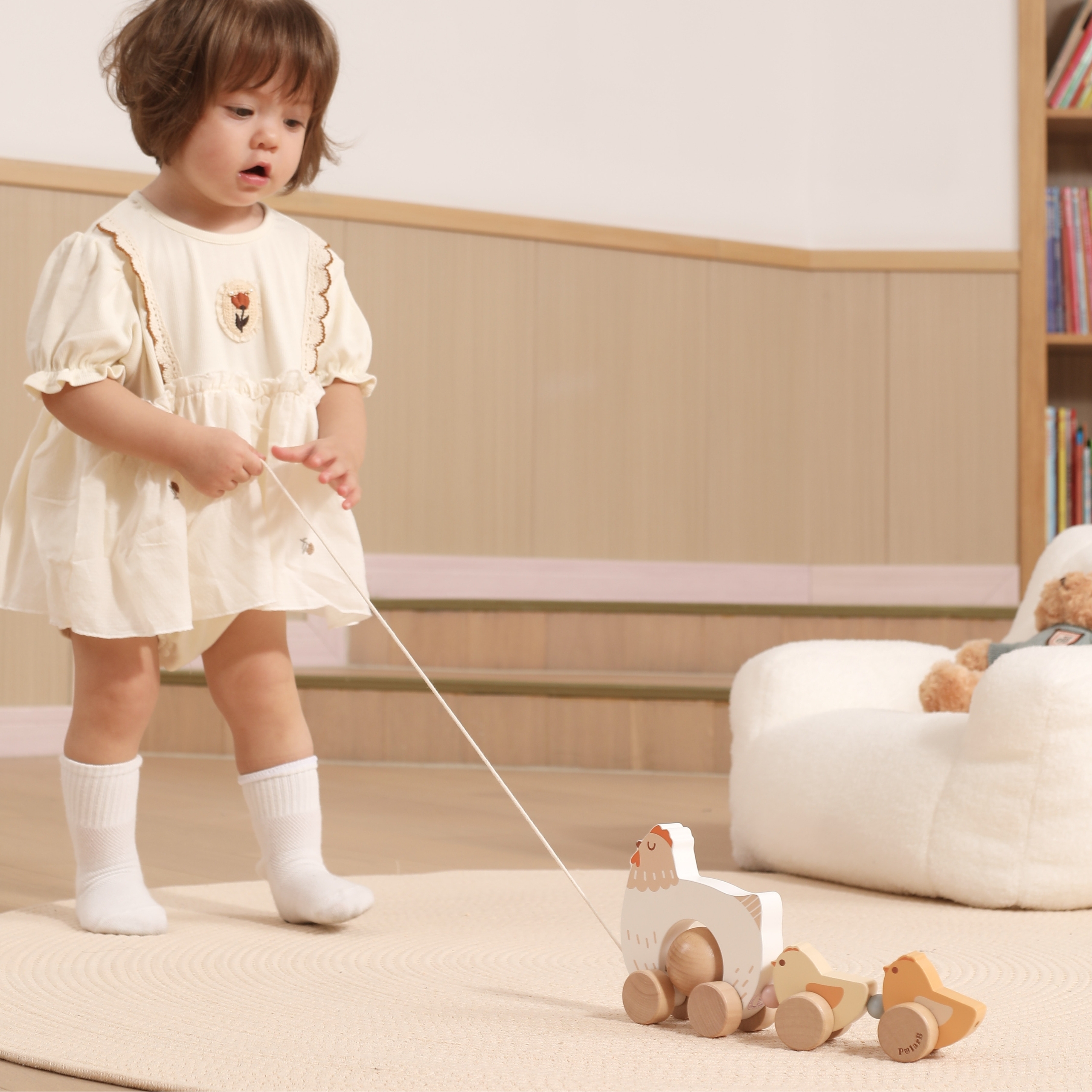 Puidust tõmmatav kanamänguasi koos tibudega on suurepärane kaaslane lapse esimesteks sammudeks. Rõõmsalt kõikuvad tibud ja eemaldatav muna pakuvad mitmekülgset mänguvõimalust. Vastupidav puidust konstruktsioon tagab pikaajalise vastupidavuse ja turvalisuse. Mänguasi ühendab liikumise, avastamise ja õppimise, stimuleerides lapse motoorikat ja koordinatsiooni.