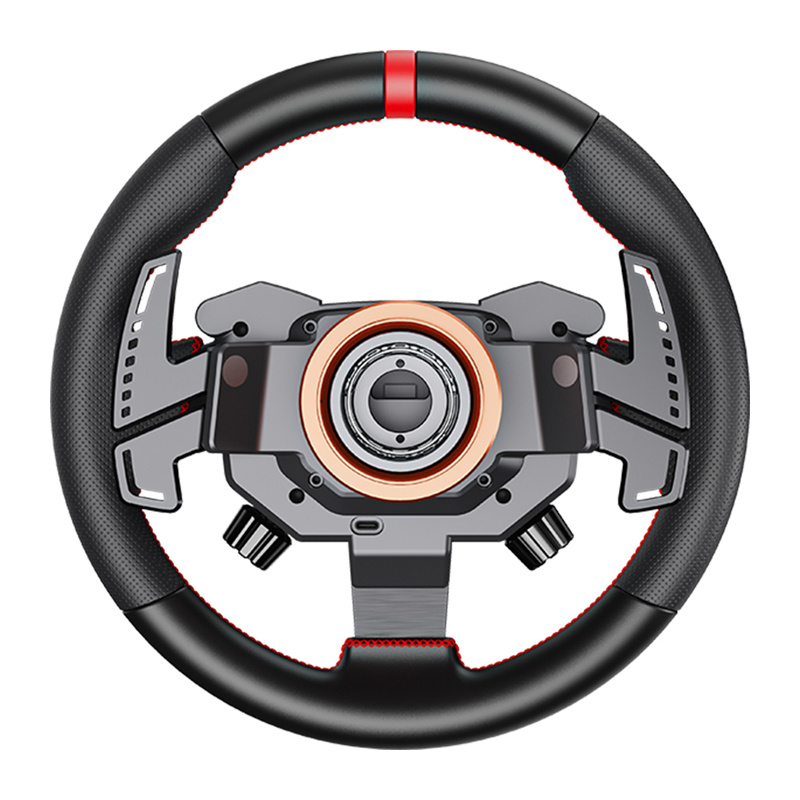 The steering wheel is equipped with an aluminum alloy quick-release system that allows for instant rim replacement without tools. This is a practical solution for those using different hardware configurations. Additionally, the robust construction and Slip Ring communication ensure stable and uninterrupted operation—even during intense gameplay.
