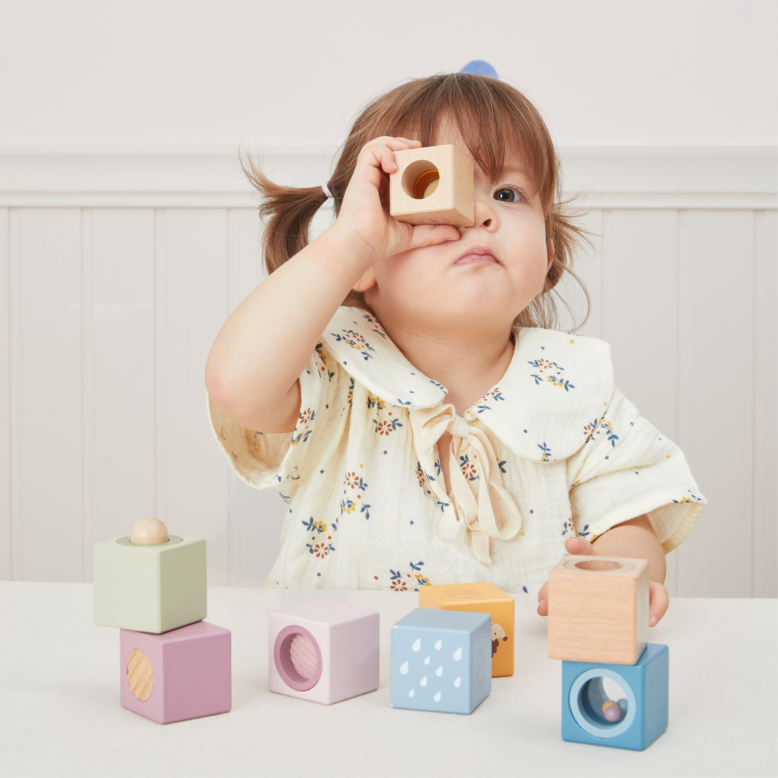 Avasta lõputu mängu ja avastuste maailm nende 8-osaliste sensooriliste puidust klotsidega. Need on loodud stimuleerima puudutust, nägemist ja kuulmist, iga klots omab unikaalset tekstuuri, peeglit, kellukest või kõristit. Ideaalne väikestele kätele, need klotsid on turvalised, vastupidavad ja kaunilt kujundatud, toetades teie lapse sensoorset arengut, peenmotoorikat ja kujutlusvõimet.