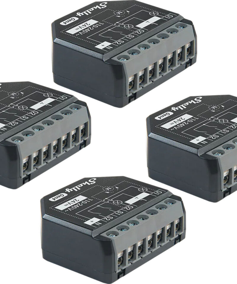 Shelly 2PM Gen4 is a compact, two-channel, next-generation relay that allows precise control of blinds, shades, curtains and electrical appliances. Each channel has independent power measurement, which allows you to continuously monitor energy consumption and optimize the operation of domestic installations. The device supports automation, scheduling and scene functions, and thanks to an improved processor and increased memory, it works faster and more stable than previous generations. The package contains 4 units of the product.