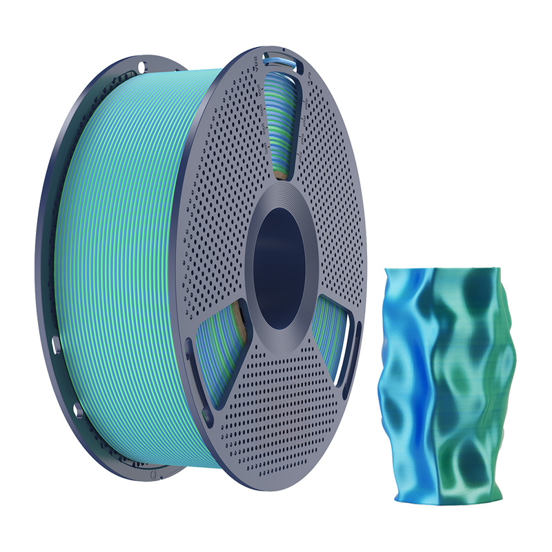 The blue-green version of Sunlu PLA+ Silk Dual Color filament is designed for those who want to give their 3D prints a unique, more striking look. Thanks to Multi Color technology, a single filament allows for multicolored results, and the finished models change their appearance depending on the angle of light and viewing perspective. It’s a great choice for decorative projects, figurines, gadgets, prototypes, and all applications where both precision and an original visual effect matter.