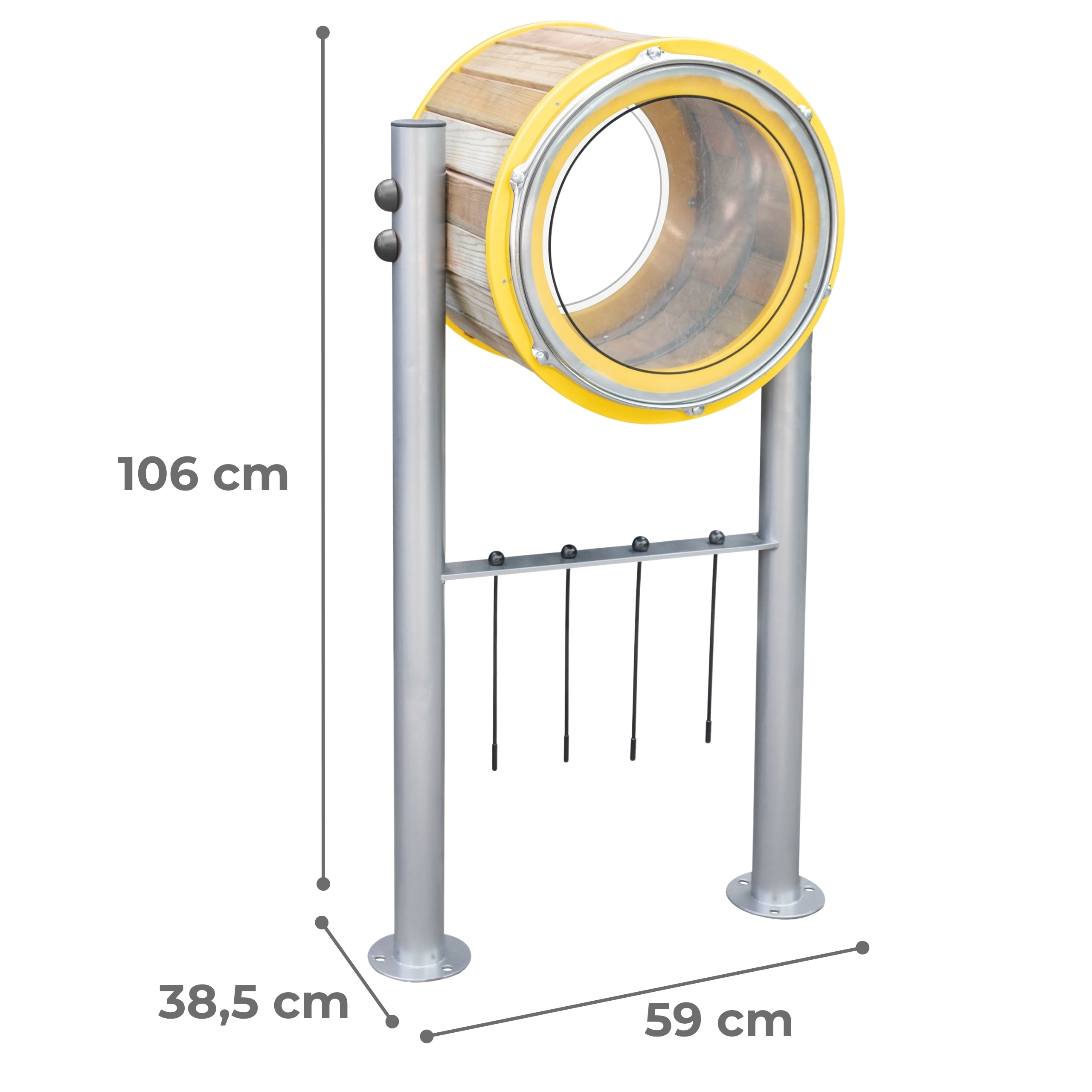 Kokkuvõttes on need trummid suurepärane lisa igale mänguväljakule, pakkudes lastele lõputult lõbusat ja arendavat tegevust. Need arendavad laste loomingulisust ja aitavad neil avastada muusika maailma turvalisel ja keskkonnasõbralikul viisil.
