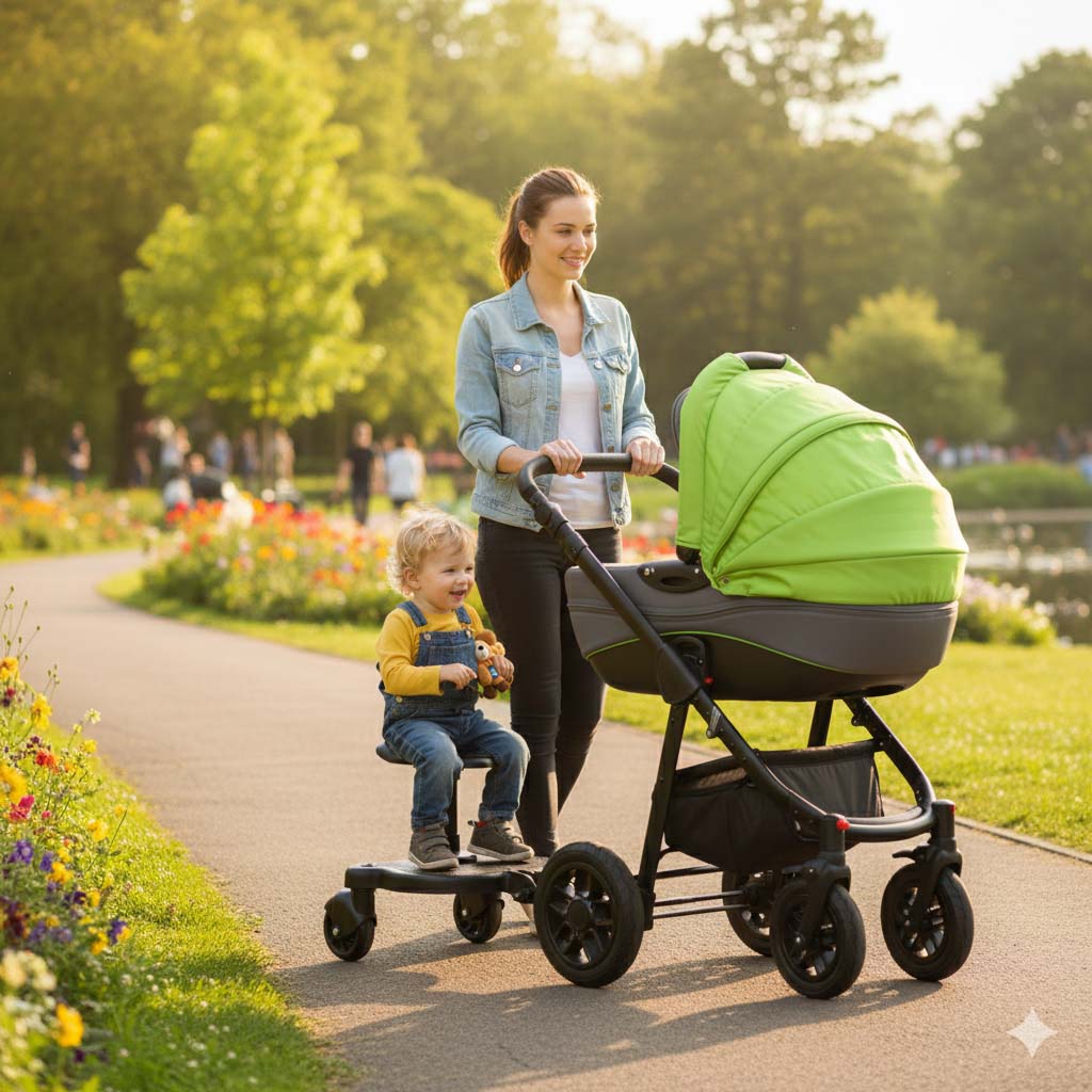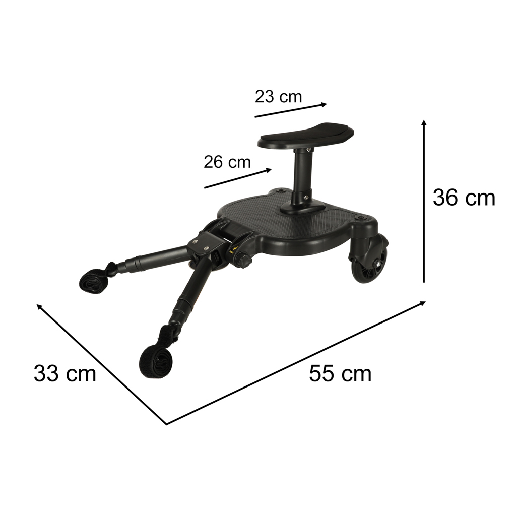Universaalne lapse istumisalus vankrile muudab jalutuskäigud kahe lapsega lihtsamaks ja mugavamaks. Kui vanem laps väsib jalutamisest, saab ta istuda või seista istumisalusel ning nautida jalutuskäiku koos perega. Toode on kerge ja lihtne paigaldada, sobides erinevatele vankritele.