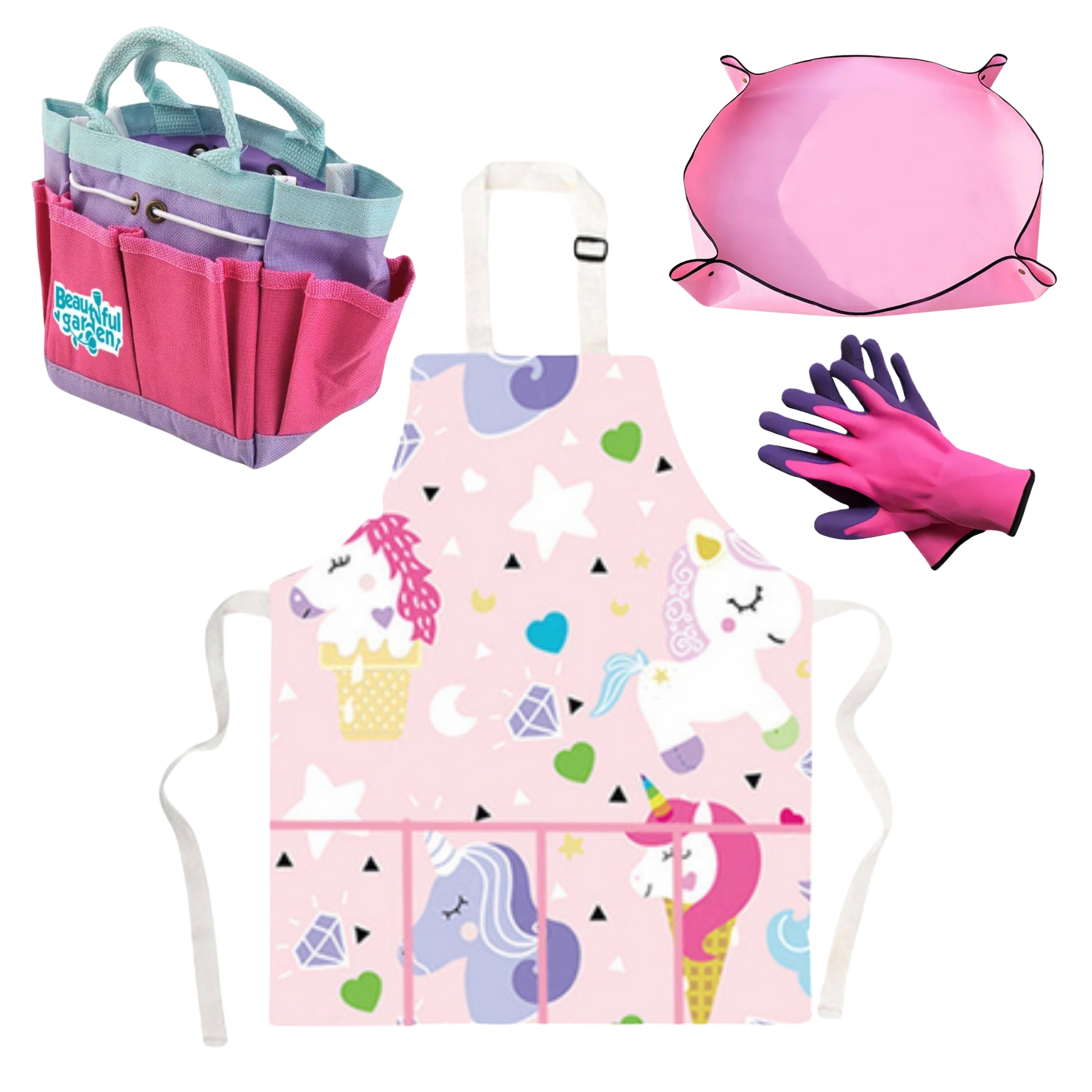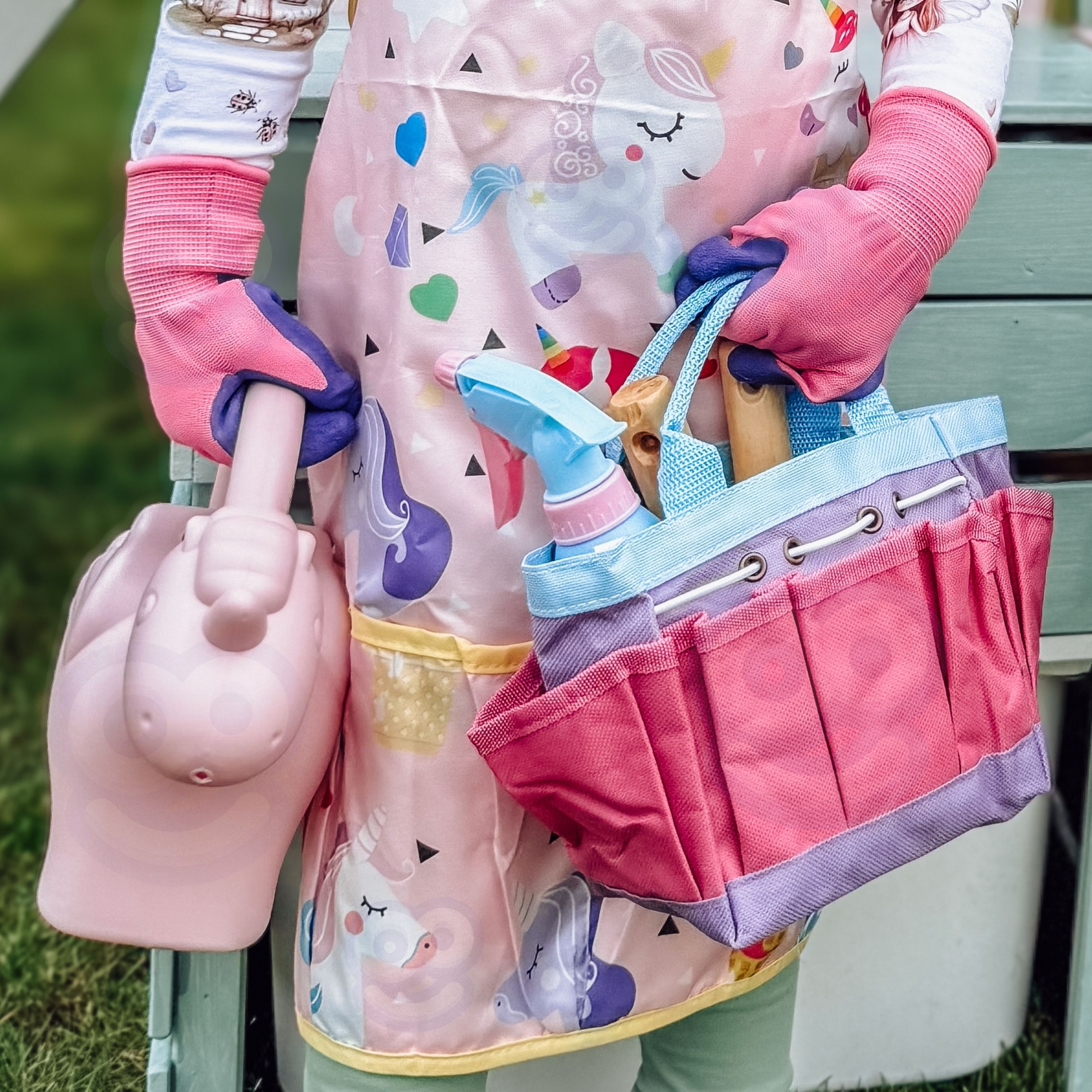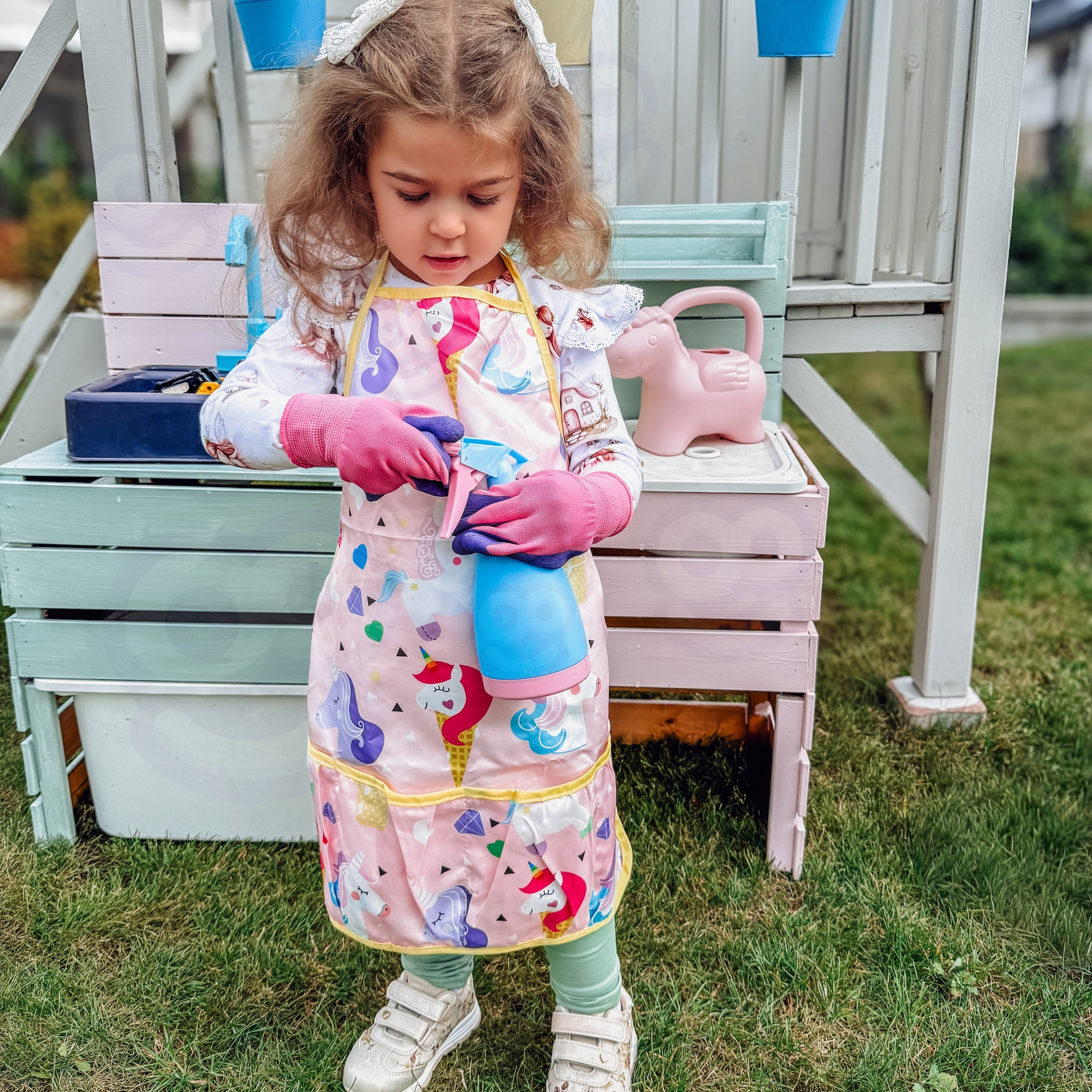 Väikese aedniku mängukomplekt on ideaalne viis innustada lapsi loovasse õuemängu. Praktilised ja ohutud tööriistad võimaldavad lastel istutada taimi, hooldada oma väikest aeda ja avastada looduse saladusi. Värviline põll ükssarviku mustriga kaitseb riideid ja muudab lapse rollimängu veelgi lõbusamaks. Komplekt sobib hästi kasutamiseks nii kodus, rõdul, rannas kui ka perereisidel.