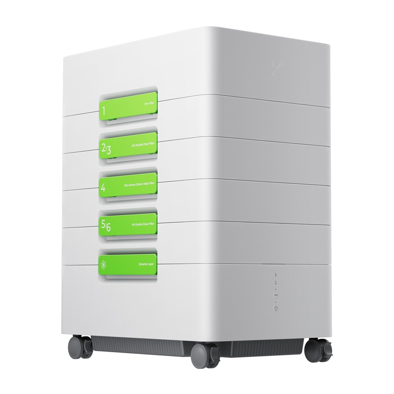 The SafetyPro™ AP2 Max uses a seven-layer filtration system that removes both large particles and microscopic fines and harmful gases from the air. The SuperCyclone filter captures 99% of particles over 5 μm in diameter and protects subsequent layers from clogging. Pre-filter and medium efficiency filters eliminate dust, fibers and up to 95% of PM2.5 fine dust, while two carbon layers – activated carbon and ultra-dense carbon mesh – neutralize volatile organic compounds and 99.99% of odors. A formaldehyde filter breaks down toxic HCHO into water and carbon dioxide, reducing its concentration. The final barrier is the HEPA filter, which traps 99.97% of particles, allergens and viruses as small as 0.3 micrometers.